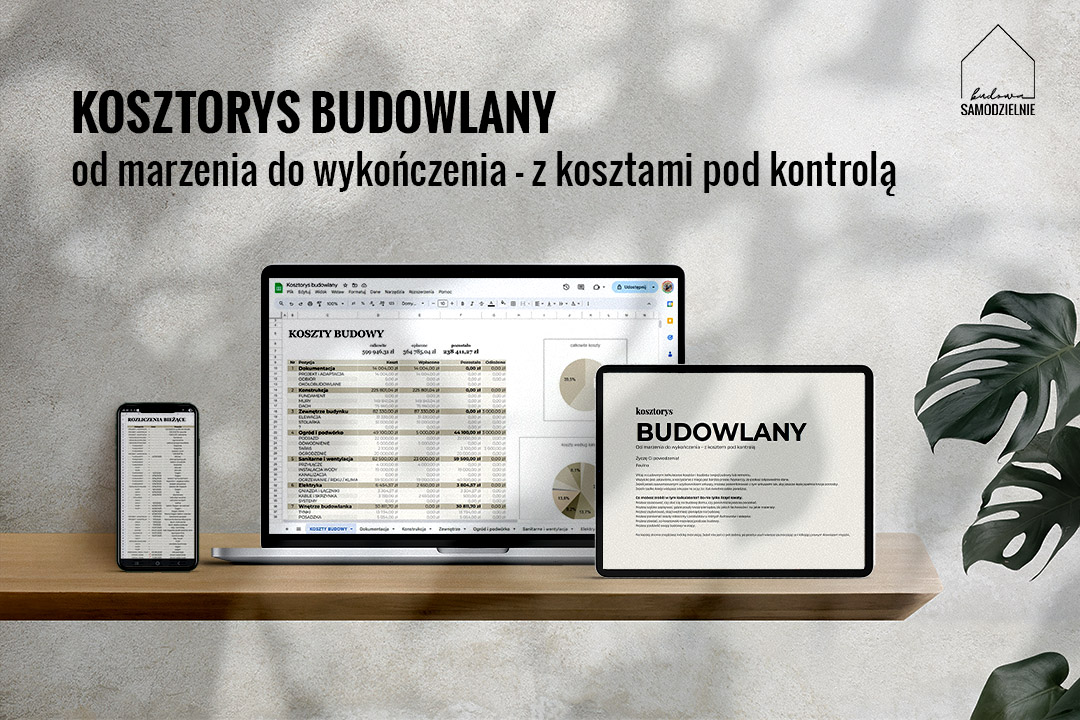 Super Kosztorys Budowlany – praktyczny kosztorys budowy domu, który pomoże Ci zaplanować wydatki, kontrolować budżet i uniknąć niespodzianek. Sprawdź, czy stać Cię na budowę i trzymaj wszystko w ryzach od pierwszej cegły.